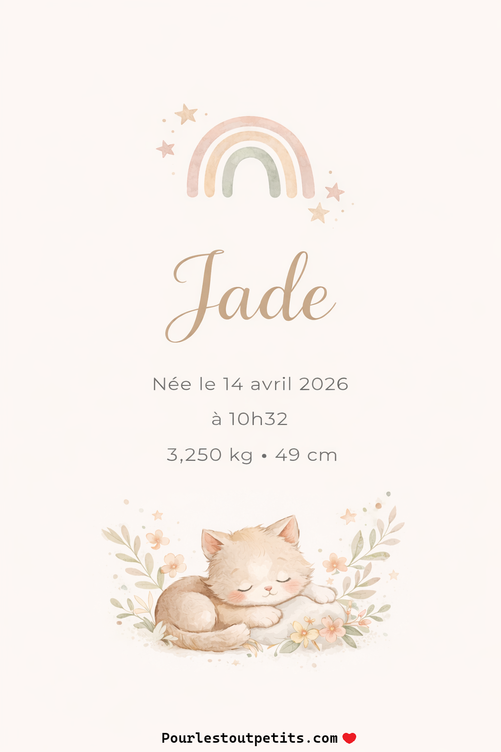 Cette affiche de naissance personnalisée a été pensée pour garder un souvenir tendre et durable de ce jour si précieux.